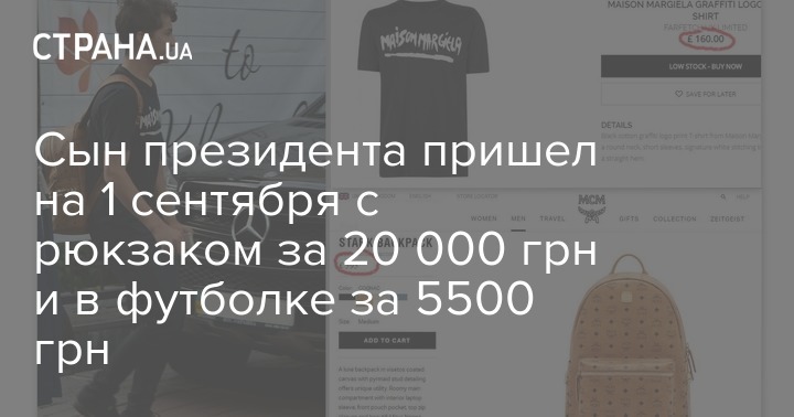Но больше всего впечатляет стоимость рюкзака сына Президента. У парня кожаная модель цвета "коньяк" известного бренда МСМ, который сейчас очень популярен среди модников всего мира. Стоит такой 20 000 грн. При том, что цены обычные школьные ранцы в киевских магазинах составляют от 1000 до 5000 грн.