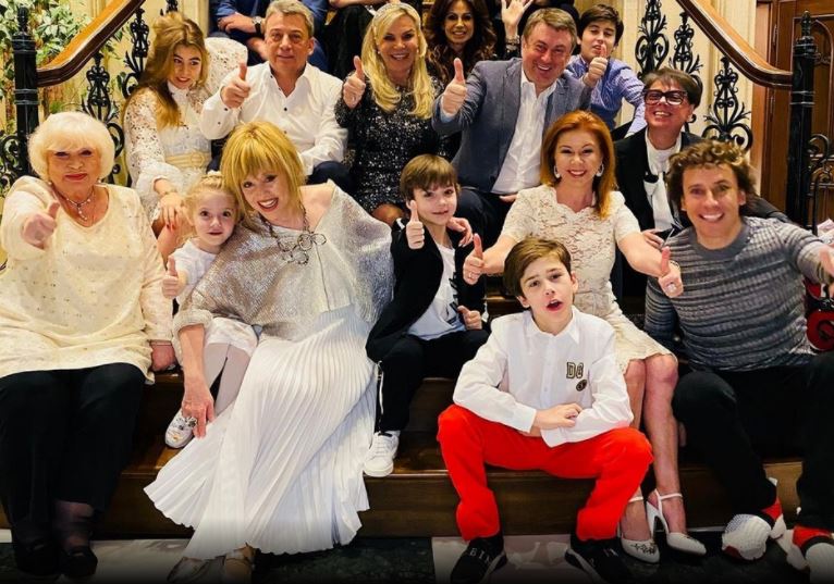 Российские артисты Алла Пугачева и ее муж Максим Галкин отметили Новый год в шумной компании с друзьями и детьми в своей усадьбе в поселке Грязь (Московская область). Примадонна устроила танцы вместе с молодой женой Игоря Николаева и Мариной Юдашкиной. Алла Борисовна была в белоснежном костюме с блестящей накидкой.