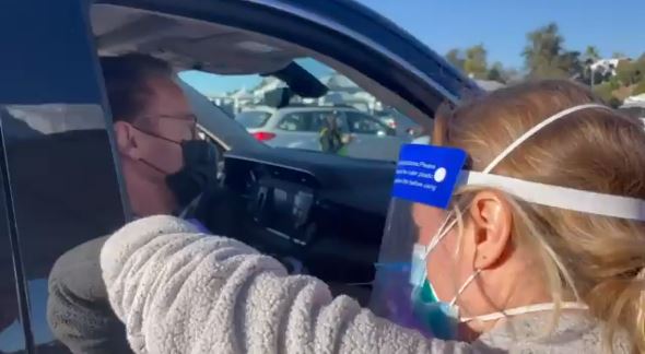 На видео показано, как Шварценеггеру делают укол, пока он сидит в машине. В комментариях под видеозаписью он указал, что получил вакцину на стадионе Dodgers Stadium в Лос-Анджелесе.