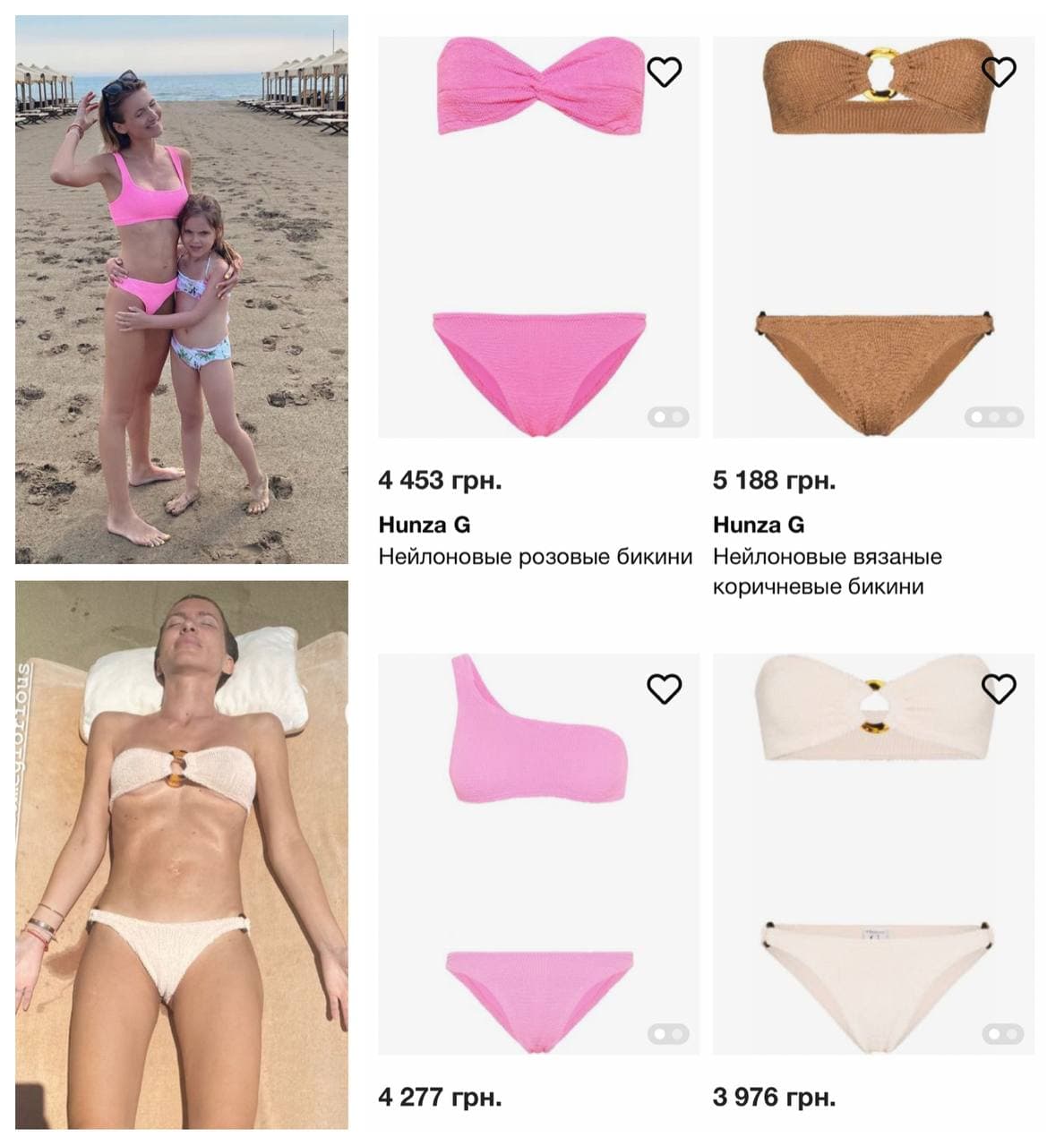 Это отнюдь не дешевое удовольствие. К примеру, бикини (верх и низ), а также пляжный платок вместе потянут на более чем 45 000 гривен. Также у Аллы пляжная сумка этого бренда, которая стоит как минимум $650, или около 18 000 гривен.