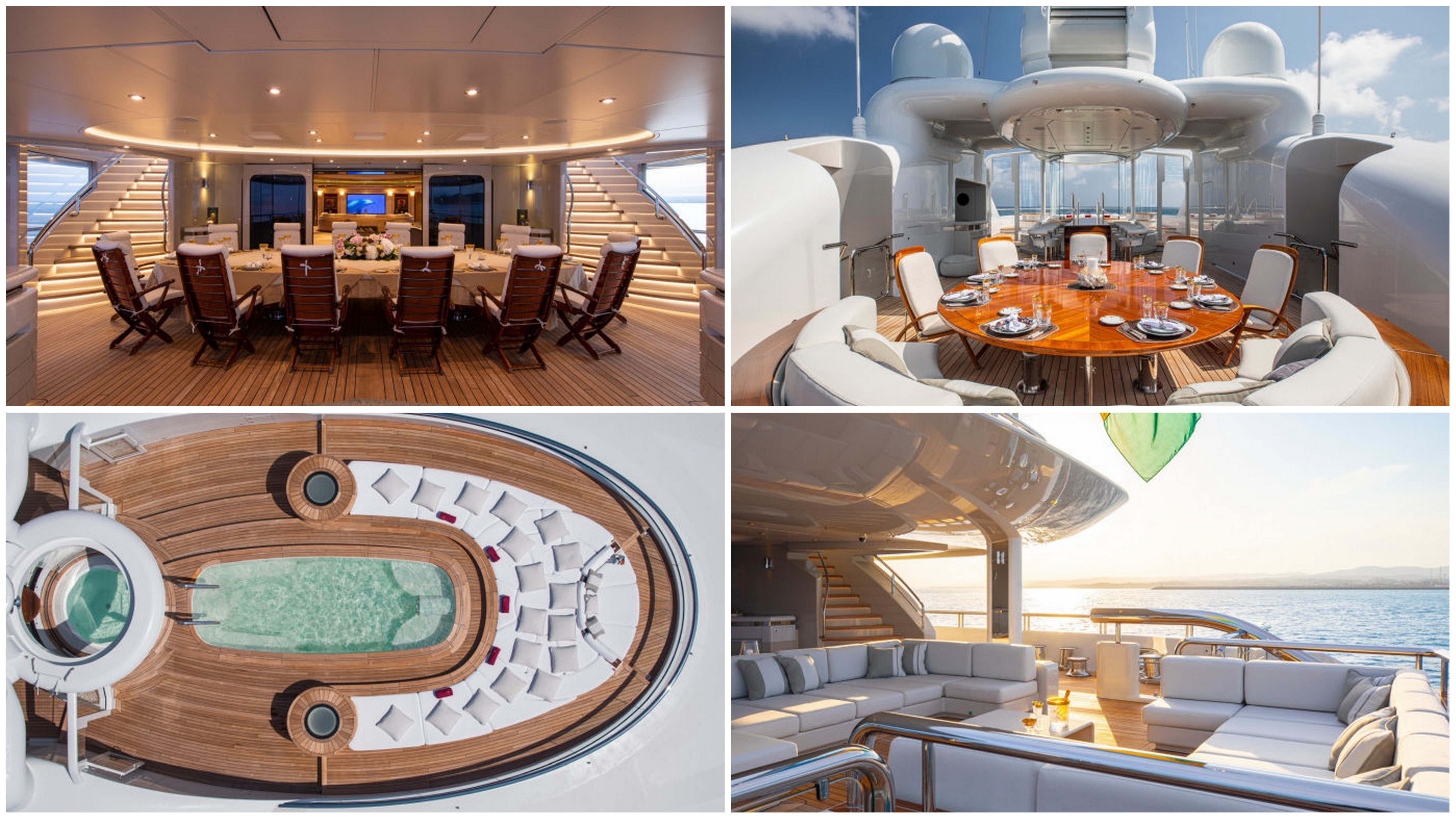 На гигантской лодке девять кают, хамам, спортзал с панорамным видом, массажный кабинет, кинотеатр, джакузи и бассейн. А еще там есть огромная обеденная зона, которую украшает фонтан с подсветкой. Обслуживает яхту экипаж из 27 человек.