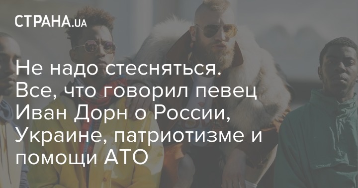Украинский музыкант Иван Дорн дал интервью российскому спортивному журналисту и видеоблогеру по имени Юрий Дудь. Это живой разговор с шутками и матом, в ходе которого артист расслабился и рассказал, что не помогал участникам АТО, а также почему вышел в футболке с тризубцем на "Новой волне". Также он заявил, что ему нравится думать, что украинцы и русские - братские народы.