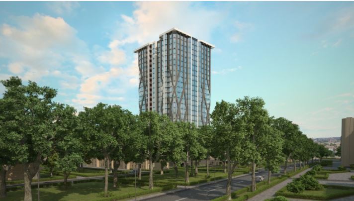 По информации застройщика, яркой особенностью жилого комплекса в виде стеклянной высотки являются декоративные накладки на фасад здания в форме ветвей деревьев. Они изготовлены из тонированного стекла, а потому не будут закрывать панорамный вид жильцам.