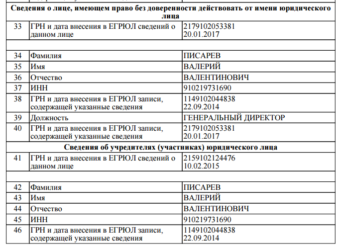 Конечно, теоретически можно предположить, что директор украинской фирмы Валерий Писарев зарегистрировал российскую фирму на себя по собственной инициативе, ни с кем не посоветовавшись.