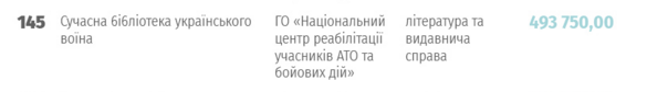 Еще полмиллиона выделено на "Современную библиотеку украинского воина" Национальному центру реабилитации участников АТО: