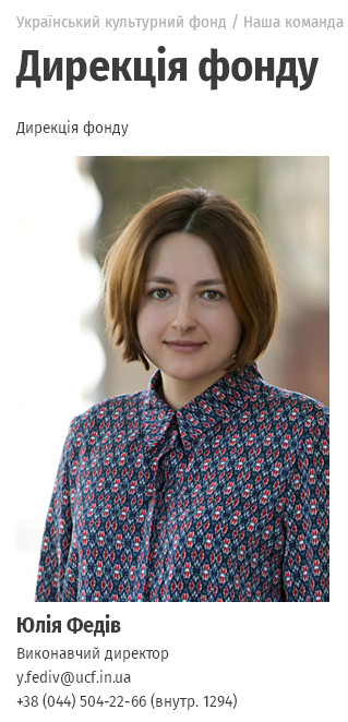 Должность Марины Порошенко называется "глава фонда". Одновременно, согласно регламенту УКФ, она выполняет функции главы наблюдательного совета. Текущей работой фонда руководит исполнительный директор Юлия Федив: