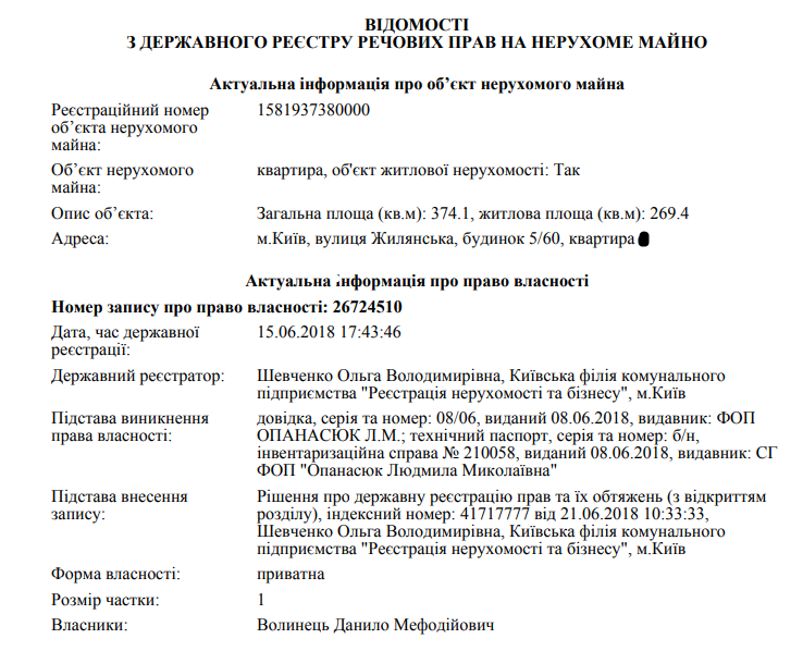 Муж министра финансов в июне 2018 года тоже приобрел огромную (374 квадрата) квартиру в Киеве. Данные об этой сделке "Страна" получила из реестра недвижимости: