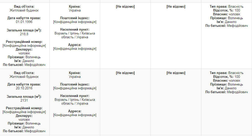 А через два месяца после торгов владелицами двух квартир в тех же точно домах и с точно таким же метражом стали Анна и Мария Данилец - дочки Оксаны Маркаровой и Данила Волынца. Об этом свидетельствуют данные из реестра недвижимости, которые получила "Страна":