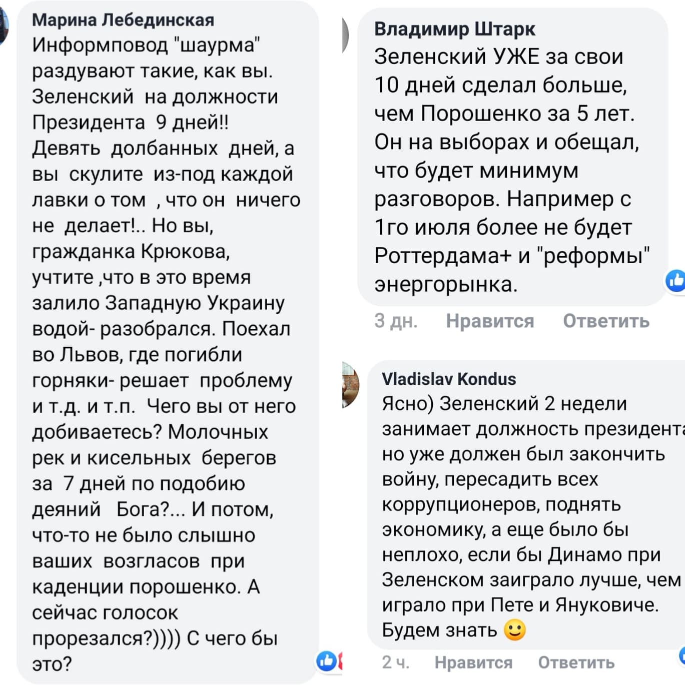 Что касается Зеленского, то пока он переживает сейчас свой "медовый месяц" в отношениях с народом. Разочароваться в нем еще толком не успели, многие люди еще живут надеждой на какие-то перемены после выборов в Раду. А потому армии ЗЕботов работать легче, чем их "попередникам"-порохоботам.
