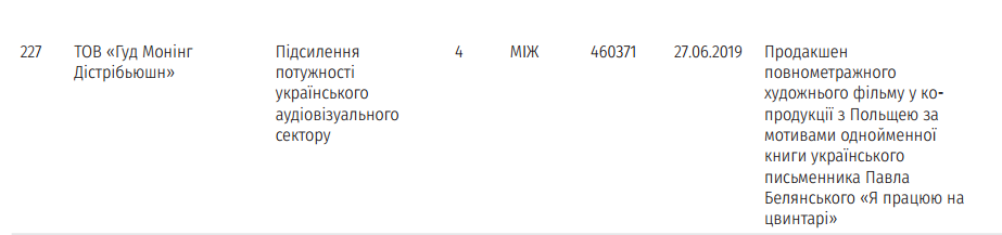 Деньги должно получить ООО "Директория кино". В конце 2018 года эта фирма еще получила 15 миллионов на фильм "патриотической" направленности "Забытые" о жителях Луганска.