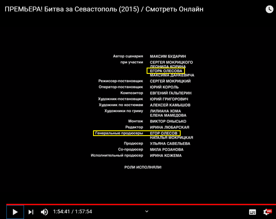 "Страна" обнаружила, что владелец студии "Кинороб" Егор Олесов был сценаристом и генеральным продюсером совместного украино-российского фильма "Битва за Севастополь", который вышел на экраны в 2015 году:
