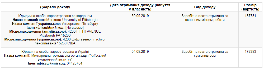 И еще почти полмиллиона гривен министр получил в сентябре в Питтсбургском университете с формулировкой "за преподавательскую и научную деятельность во внерабочее время":