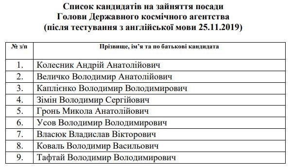 Всего к участию в конкурсе были допущены 18 претендентов, среди которых и два бывших председателя Госагентства по космосу.