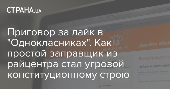 29 декабря Роменский суд Сумской области вынес приговор местному жителю, оператору заправочной станции Юрию К. за лайк картинки в "Одноклассниках". Данная соцсеть еще со времен Порошенко запрещена в Украине. "Страна" уже сообщала об этом приговоре.