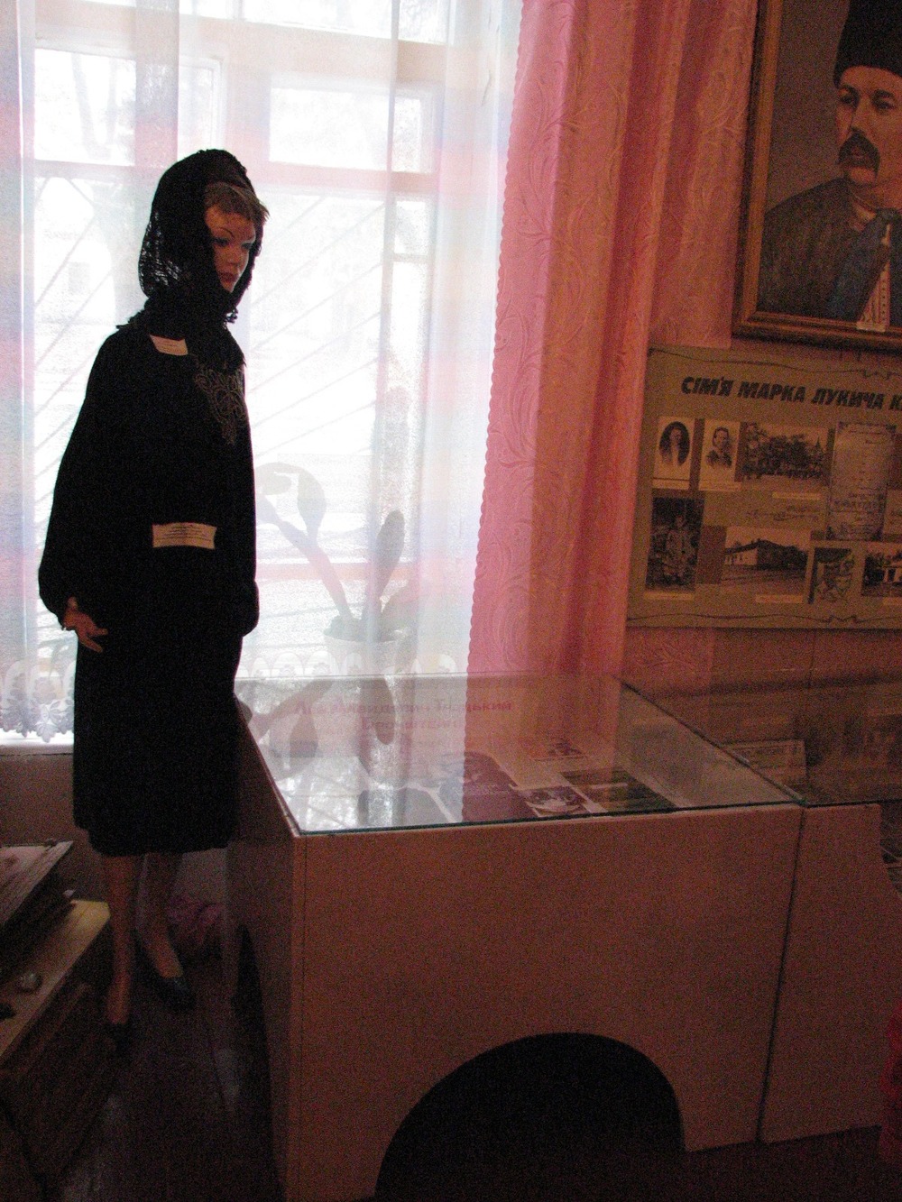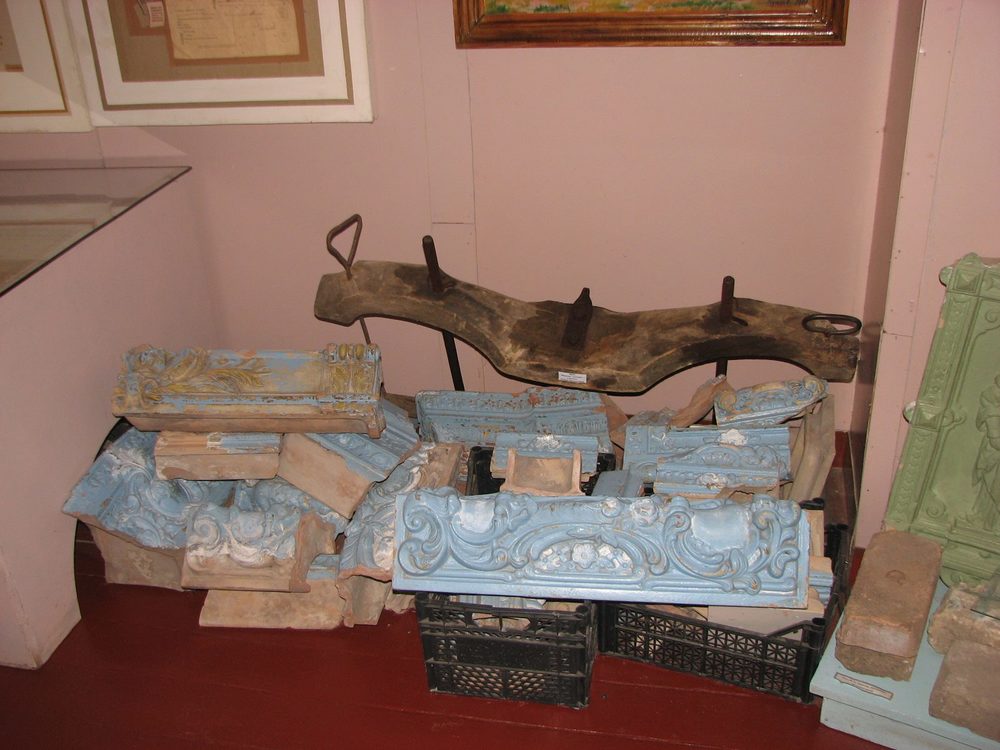 В углу свалены грудой фрагменты камина из дома отца Троцкого – Давида Бронштейна, а на манекене рядом – кружевная шаль… няни Льва Троцкого.