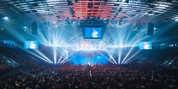 На дне рождения церкви "Возрождение" во Дворце спорта почти нет свободных мест. Видео: Анастасия Товт, Страна.ua