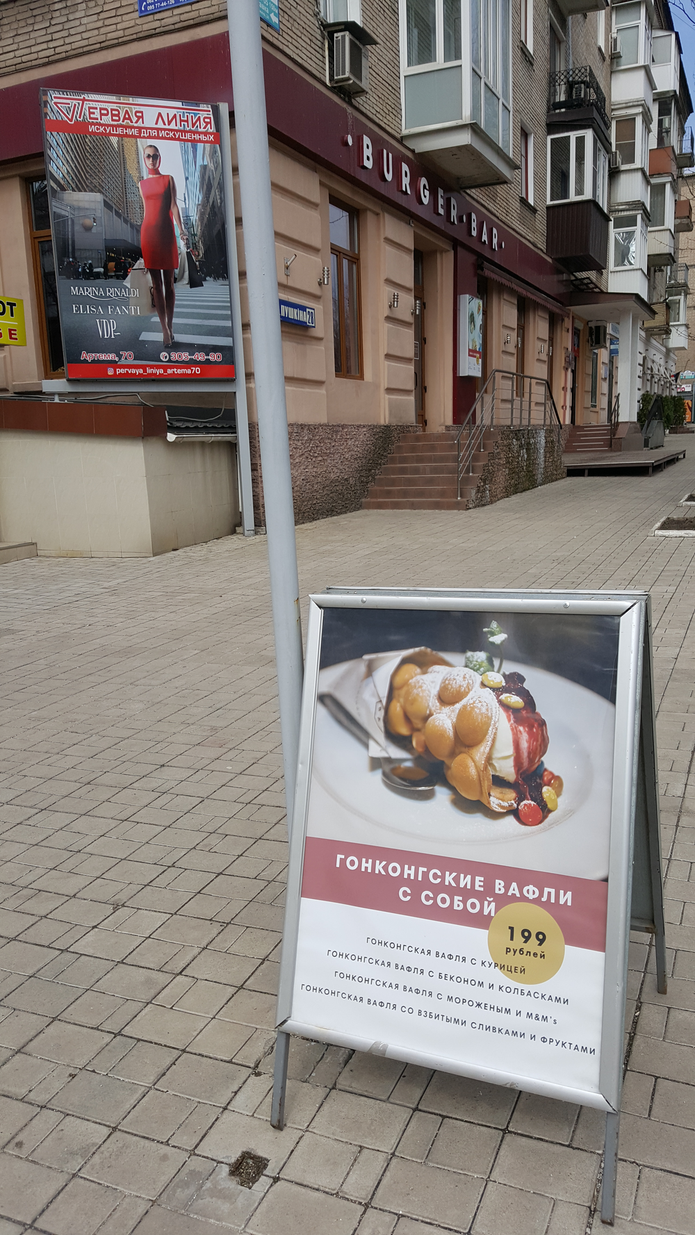 Несмотря на не слишком выдающйся материальный уровень большей части дончан, в городе продолжают открываться новые кафе и рестораны. И, несмотря ни на что, пустыми они, как правило, не стоят. Вот Burger Bar на пересечении бульвара Пушкина и Театрального проспекта. В обычную буднюю среду, в разгар рабочего дня (около 13 часов) здесь занято более половины столиков.