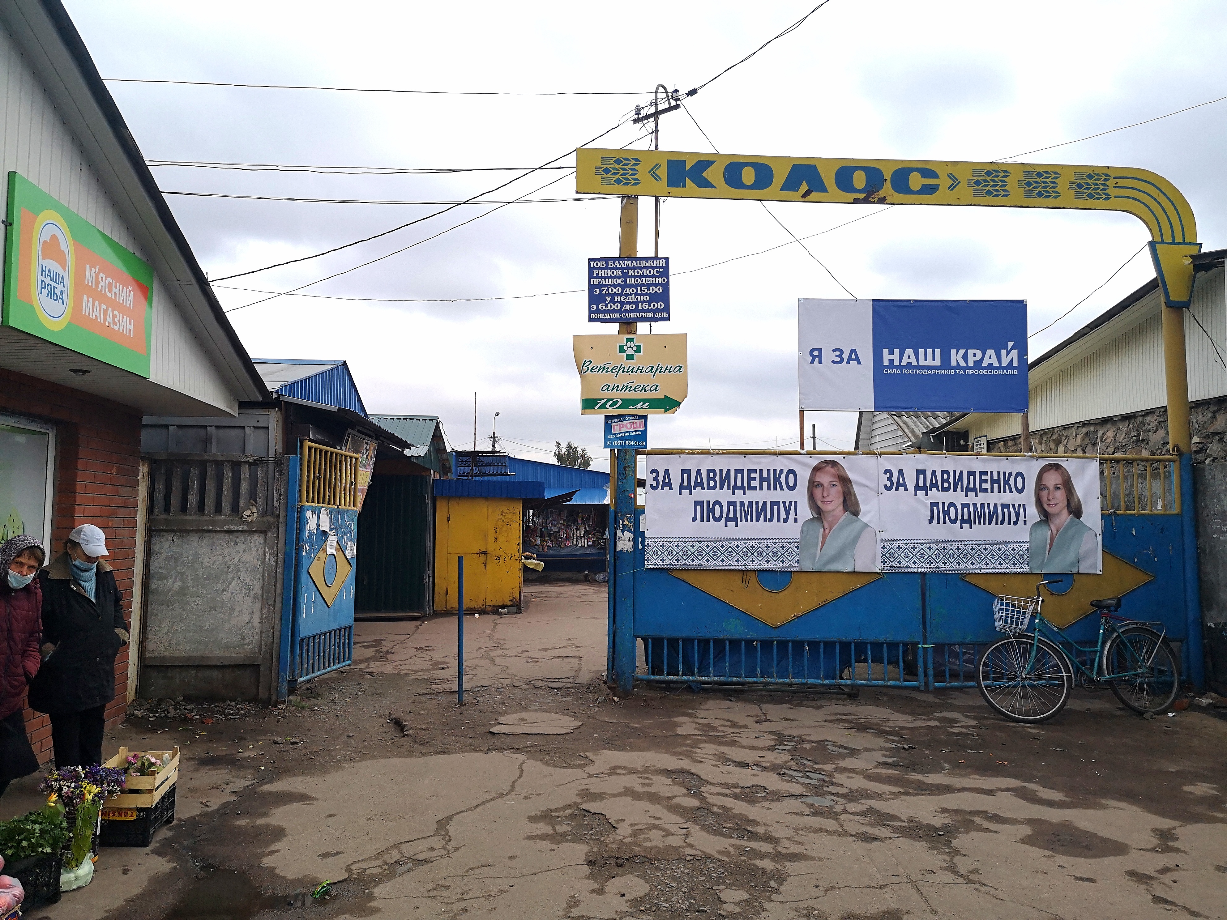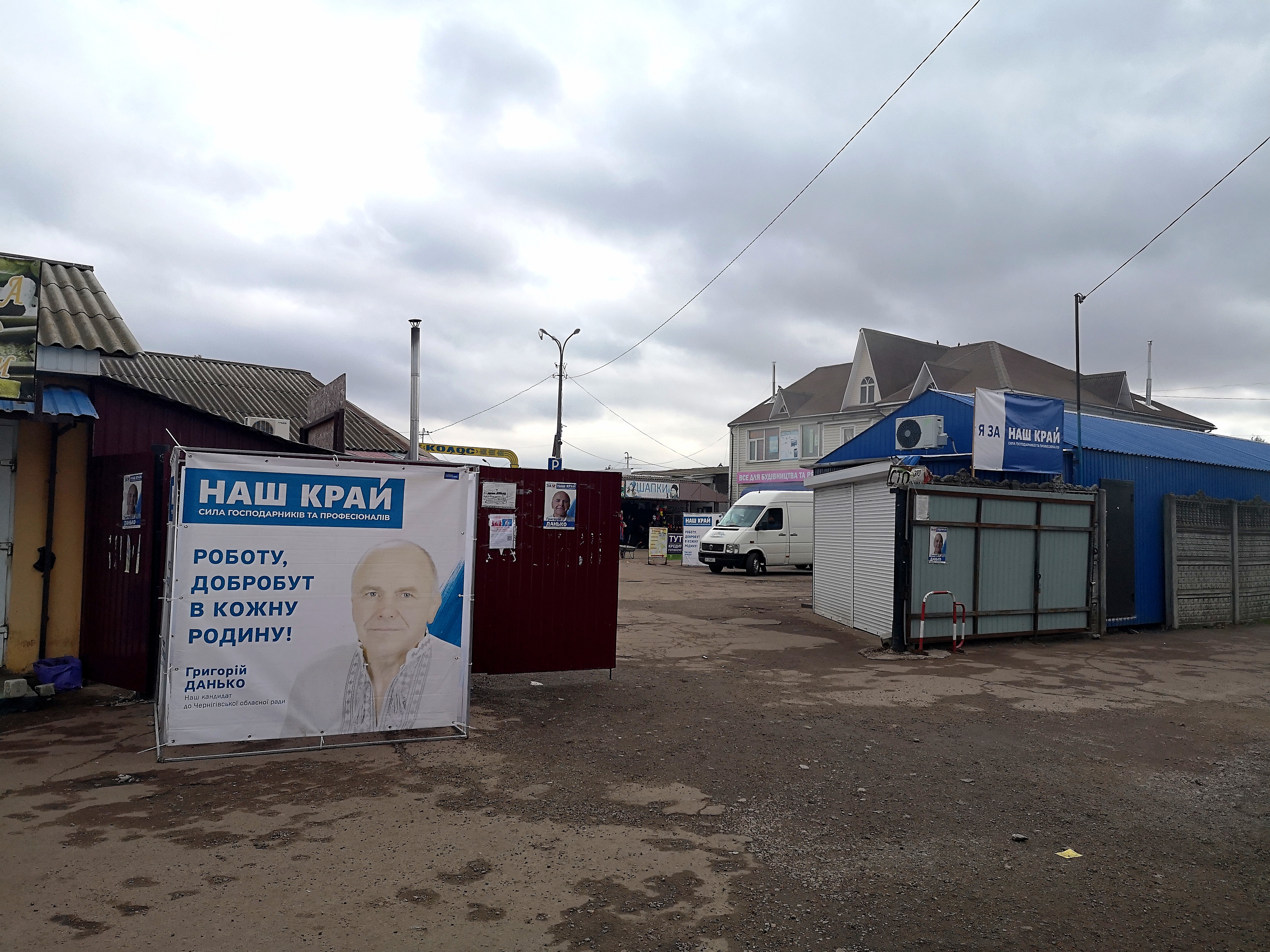 Но по количеству рекламы всех переплюнула партия “Наш Край” - она выкупила большую часть билбордов в городе и завесила плакатами чуть ли не все стены на местном рынке. Это не случайно: кандидат от партии “Наш край” - директор Бахмачского рынка Григорий Данько.