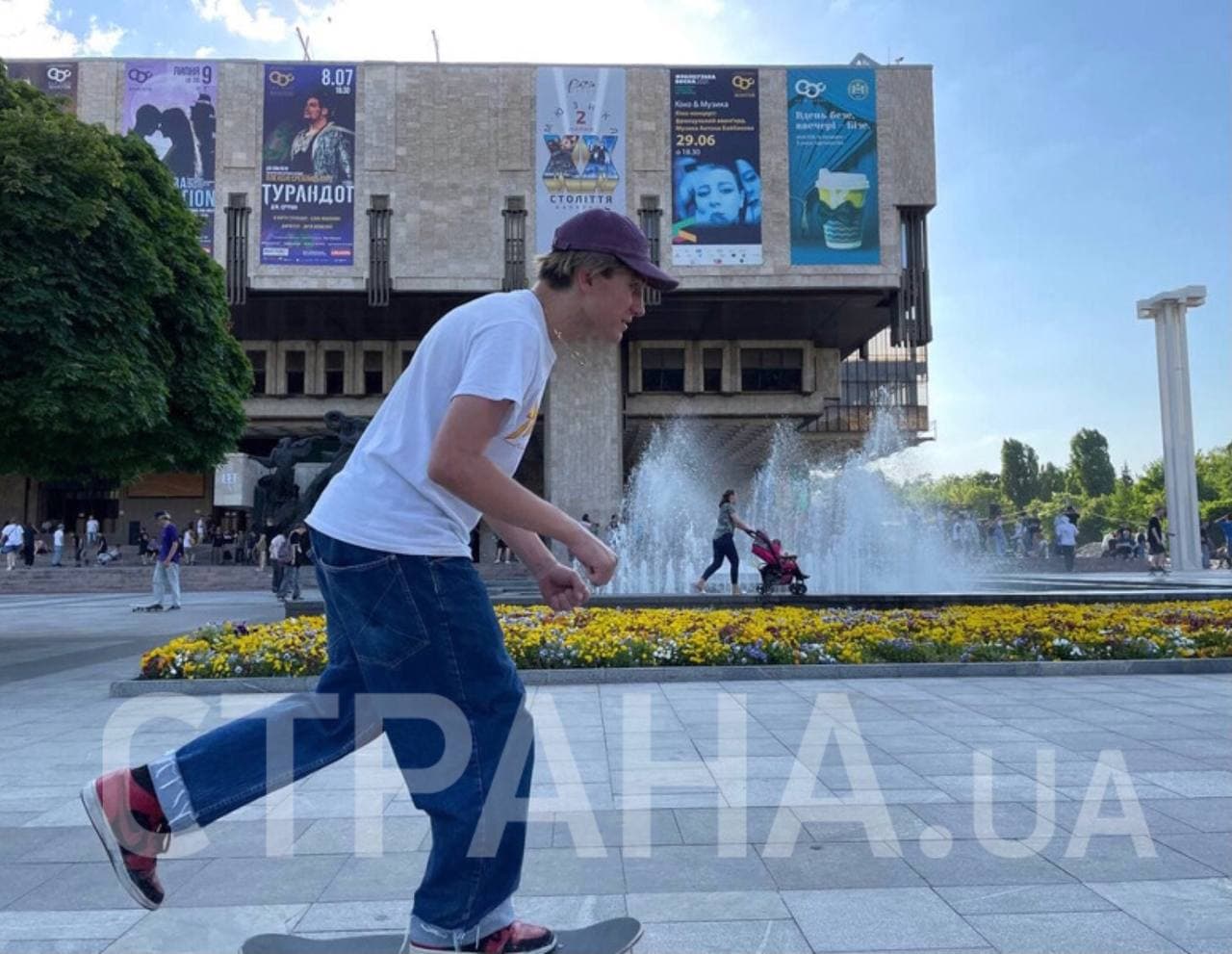 Сын Геннадия Кернеса Даниил возле фонтана в Харькове. Фото: "Страна"