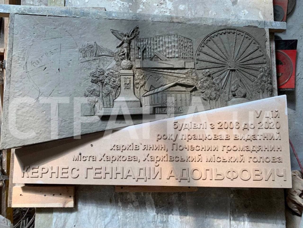 Эскиз памятника обсуждает семья, а вот мемориальную доску, которую повесят на здание Харьковской горадминистрации он мне уже показал.