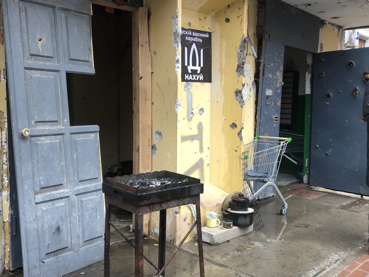 — Видите, черная пленка на 8-м этаже? Там моя подруга живет. Мы там только что заклеивали окна и устанавливали двери — они все вскрыты. Русские ходили по квартирам. На нижних этажах повыносили все, а у моей подруги украли робота-пылесоса. Это единственное, что пропало, — говорит молодой парень Саша, которого я встречаю в Буче.
