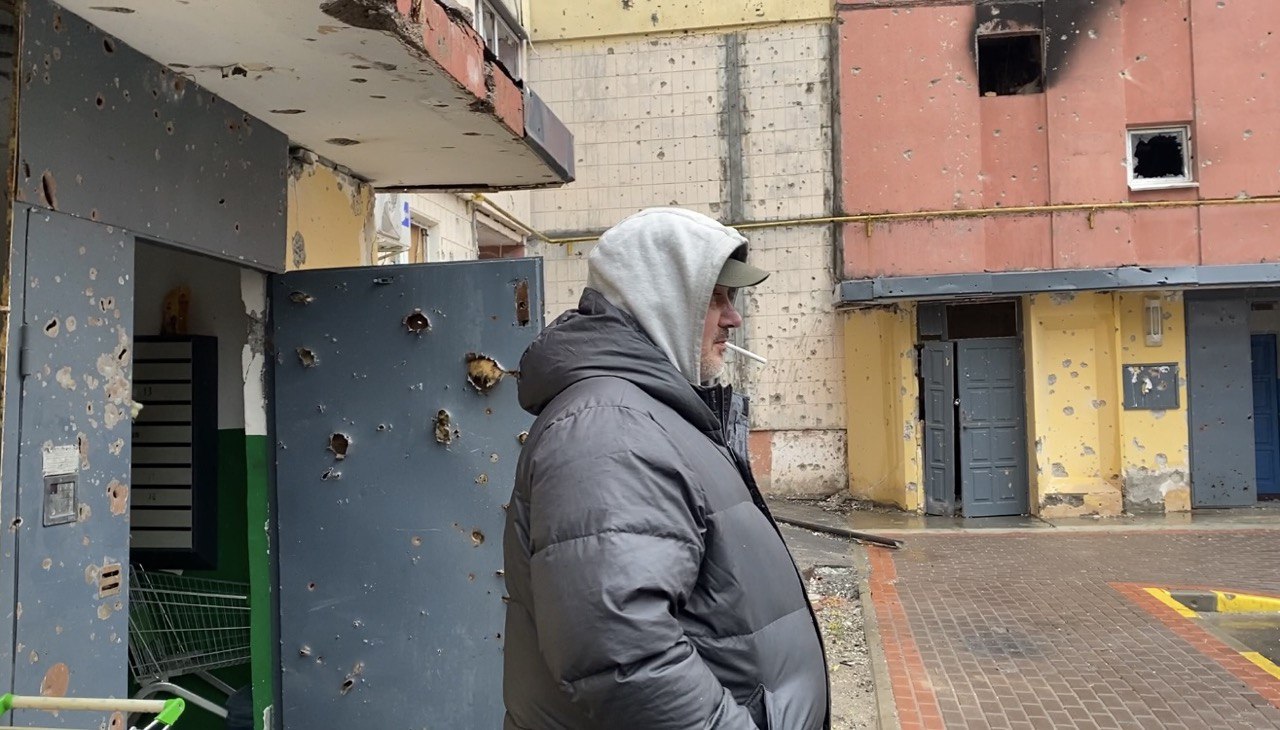“Поначалу в подвал бегал. Потом устал. Был дома”, — так он отвечает на вопрос, как пережил российскую оккупацию.