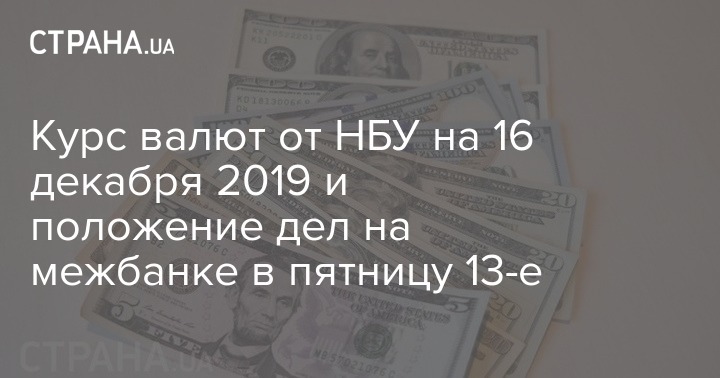 В НБУ установили следующие официальные курсы гривни к иностранным валютам на понедельник, 16 декабря 2019: