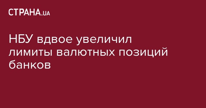 Национальный банк Украины вдвое повысил лимиты открытых длинной и короткой валютных позиций банков - до 10% от их регулятивного капитала. Об этом сообщается в официальном Facebook регулятора.