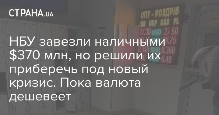 Последние дни ходила масса слухов об очередной продаже Нацбанком новой партии долларовой банкноты банкам. Однако они не оправдались. Источники "Страны" сообщили, что для НБУ в Киев было доставлено наличных на $370 млн. Однако их решили не предлагать рынку (под обмен безналичного доллара на наличный), из-за небольшого спроса со стороны банков. Оставить прозапас в случай нового ажиотажа и дефицита "американца". Держать в хранилище до возобновления спроса на банкноту.