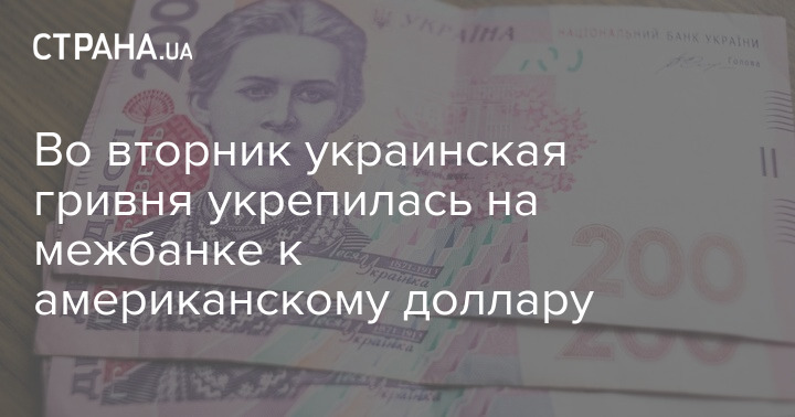 Во вторник украинская гривня укрепилась на межбанке к американскому доллару