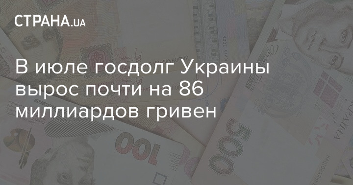В июле этого года совокупный государственный долг Украины вырос на 85,88 млрд грн - до 2,355 трлн гривен.