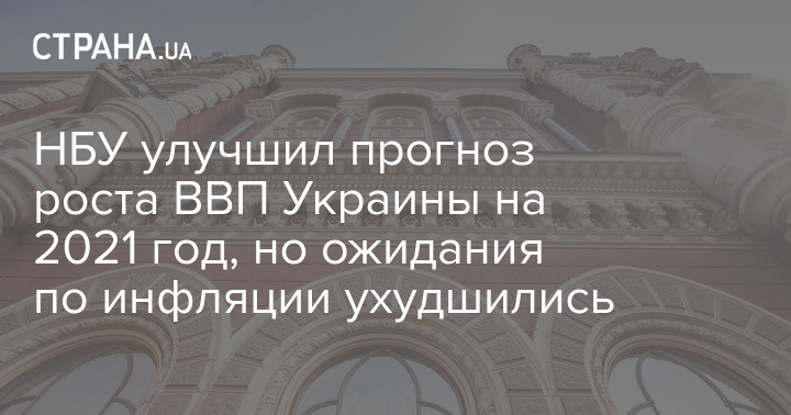 Национальный банк Украины в четверг, 22 октября, улучшил прогноз инфляции на 2020 год с 4,7% (в июльском прогнозе) до 4,1%. Однако на следующий год он, напротив, ухудшен - с 5,5% до 6,5%. Кроме того, регулятор сохранил прогноз падения валового внутреннего продукта на 2020 год на уровне 6% и улучшил ожидания относительно роста показателя в следующем – с 4% до 4,2%.