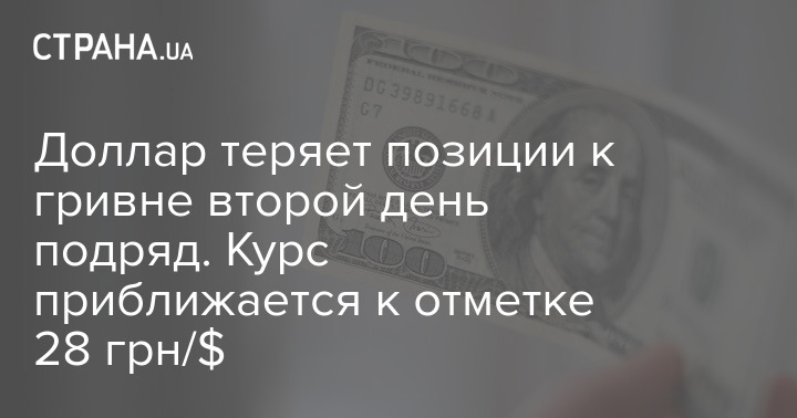 Доллар теряет позиции к гривне второй день подряд. Курс приближается к отметке 28 грн/$