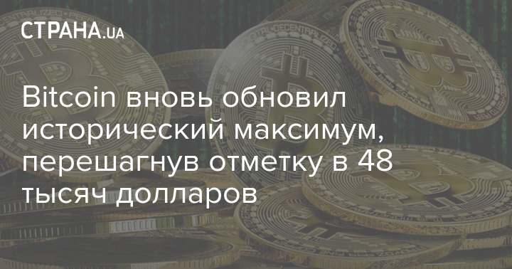 Курс криптовалюты по состоянию на 8:59 (по Киеву) составлял более $48 тысяч.
