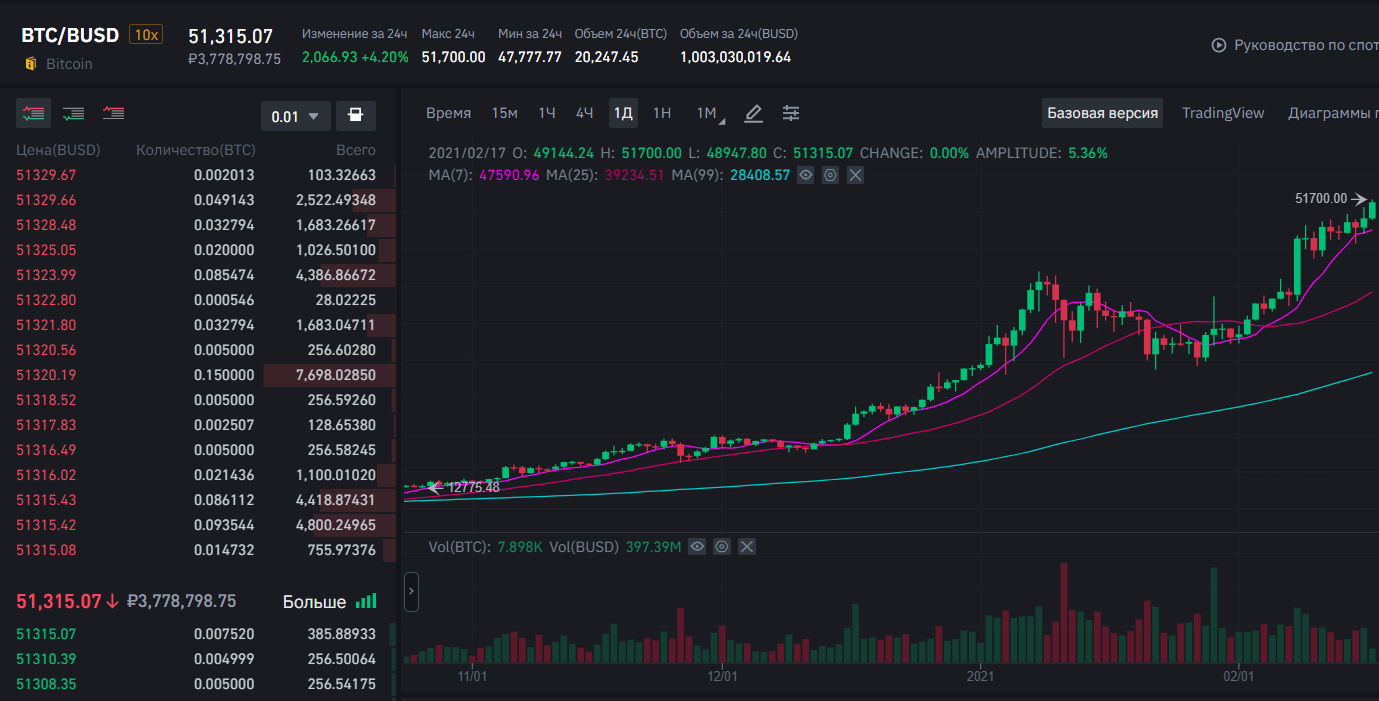 Цена криптовалюты Bitcoin продолжает расти семимильными шагами и в среду, 17 февраля, днем достигла нового исторического максимума, превысив 51 тысячу долларов.