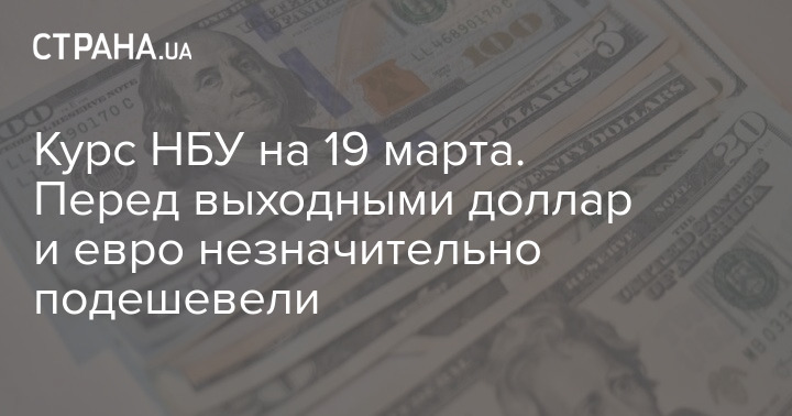Национальный банк Украины в пятницу, 19 марта, установил официальный курс гривны по отношению к иностранным валютам. По сравнению с предыдущим рабочим днем доллар и евро синхронно упали в цене.