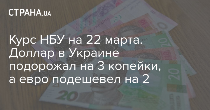Национальный банк Украины установил официальный курс гривны по отношению к иностранным валютам на понедельник, 22 марта. Доллар сегодня стоит 27,71 грн, что на 3 копейки больше, чем в предыдущий рабочий день