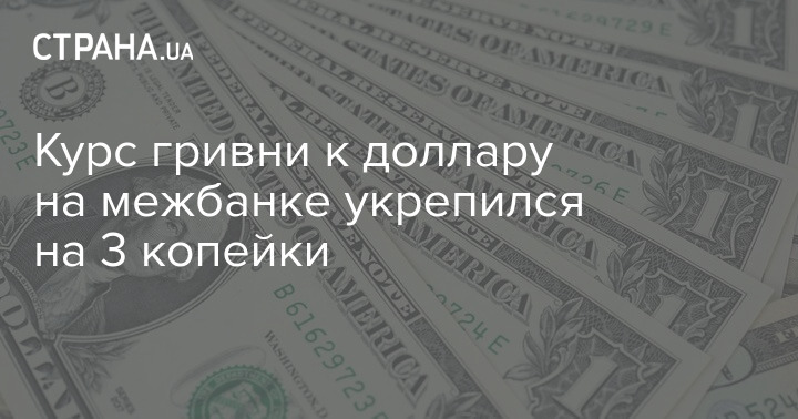 Курс гривни к доллару на межбанке укрепился на 3 копейки