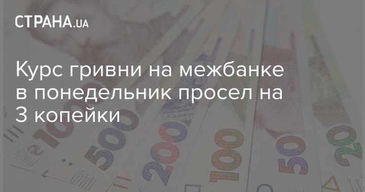 Согласно данным Нацбанка Украины (НБУ), справочный курс гривни на межбанке в понедельник ослабился до 27,93 грн/$1 с 27,92 грн/$1 в пятницу.