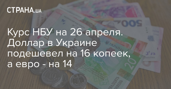 Курс НБУ на 26 апреля. Доллар в Украине подешевел на 16 копеек, а евро - на 14