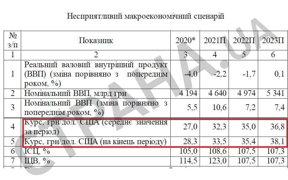 - снижение курса гривны к доллару: в 2021 году — на 3,6%, в 2022 году — на 2,8%.