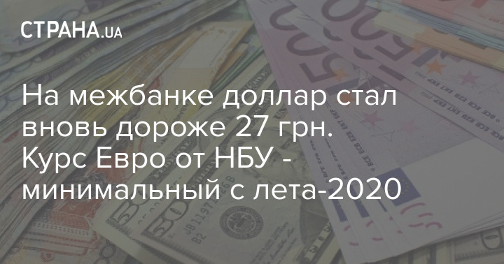 На межбанке доллар стал вновь дороже 27 грн. Курс Евро от НБУ - минимальный с лета-2020