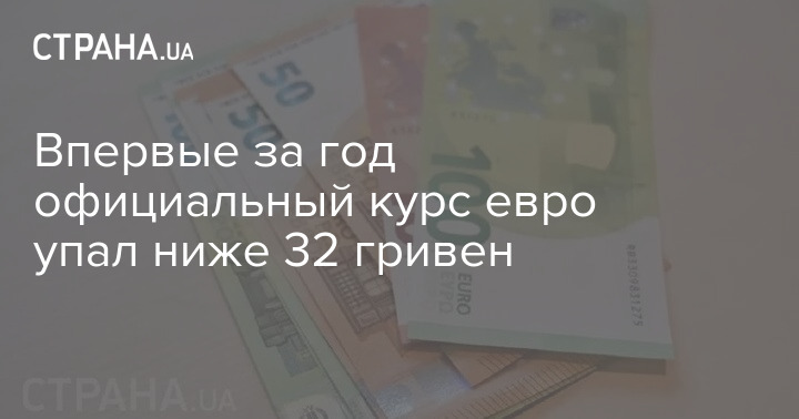 Впервые за год официальный курс евро упал ниже 32 гривен