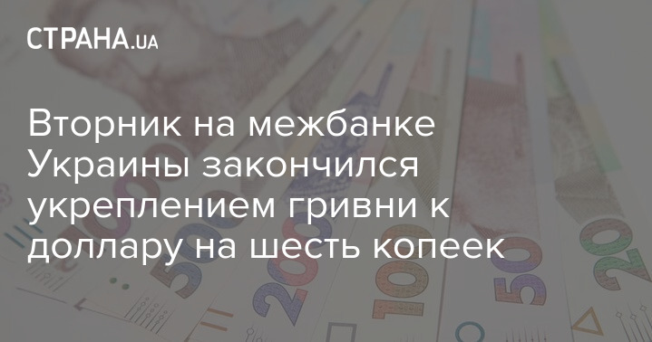 Вторник на межбанке Украины закончился укреплением гривни к доллару на шесть копеек