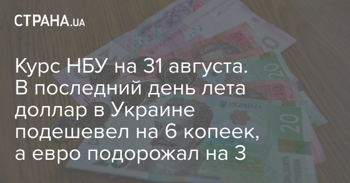 Так, по данным Национального банка, 31 августа стоимость доллара составляет 26,8601 гривен за единицу валюты. Евро сегодня, напротив, подорожал, его стоимость, по информации НБУ, сегодня составляет 31,6963 за единицу валюты. Это на три копейки больше, чем в понедельник. Российский рубль, как сообщает Нацбанк, в последний день лета стоит 0,365 грн.