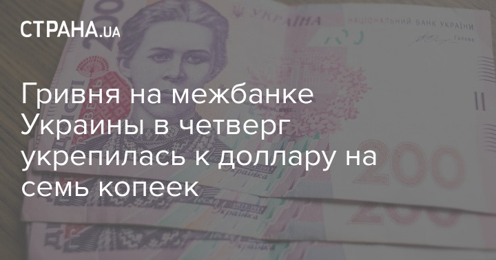 В четверг, 9 сентября, на межбанковском валютном рынке курс гривни укрепился на семь копеек и составил  26,685 грн/$1 с 26,765 грн/$1 в предыдущий рабочий день. Котировки нацвалюты на закрытие торгов составили 26,675-26,695 грн/$1. Об этом сообщает "Интерфакс-Украина" со ссылкой на дилеров коммерческих банков.