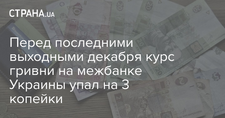Перед последними выходными декабря курс гривни на межбанке Украины упал на 3 копейки