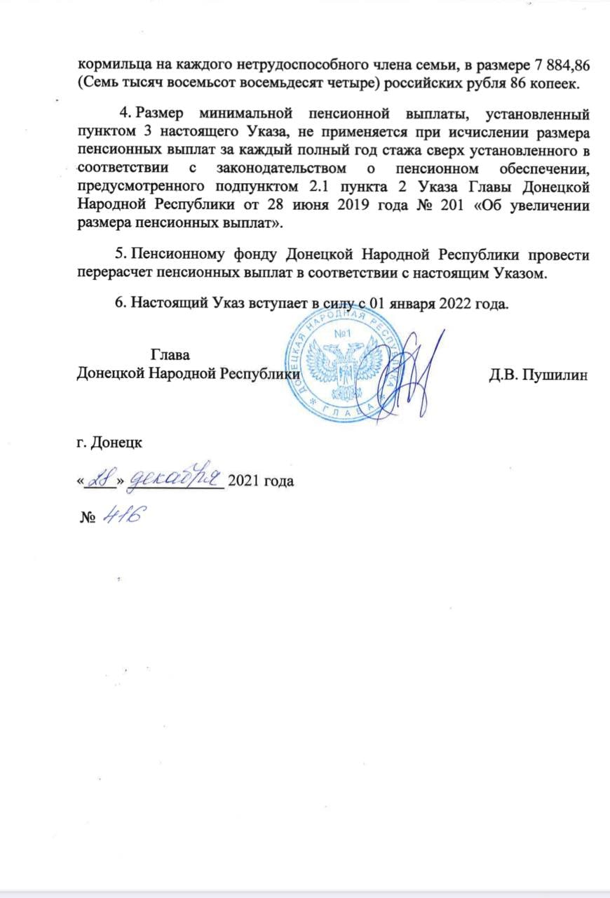 Согласно указу Пушилина, минимальная пенсионная выплата с 1 января составит 7 884,86 рублей (2 915 грн).
