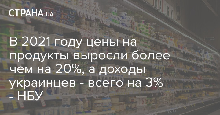 В 2021 году цены на продукты выросли более чем на 20%, а доходы украинцев - всего на 3% - НБУ