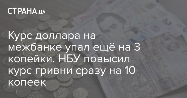 Курс доллара на межбанке упал ещё на 3 копейки. НБУ повысил курс гривни сразу на 10 копеек